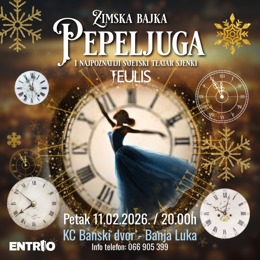 Ova očaravajuća predstava na repertoaru je u Banskom dvoru u Banjaluci, u srijedu 11. februara 2026. godine u 20 sati. “Pepeljuga i Teatar Sjena” obećava vizuelno raskošan i emotivan spektakl koji poznatu bajku pretvara u nezaboravno iskustvo za sve generacije.