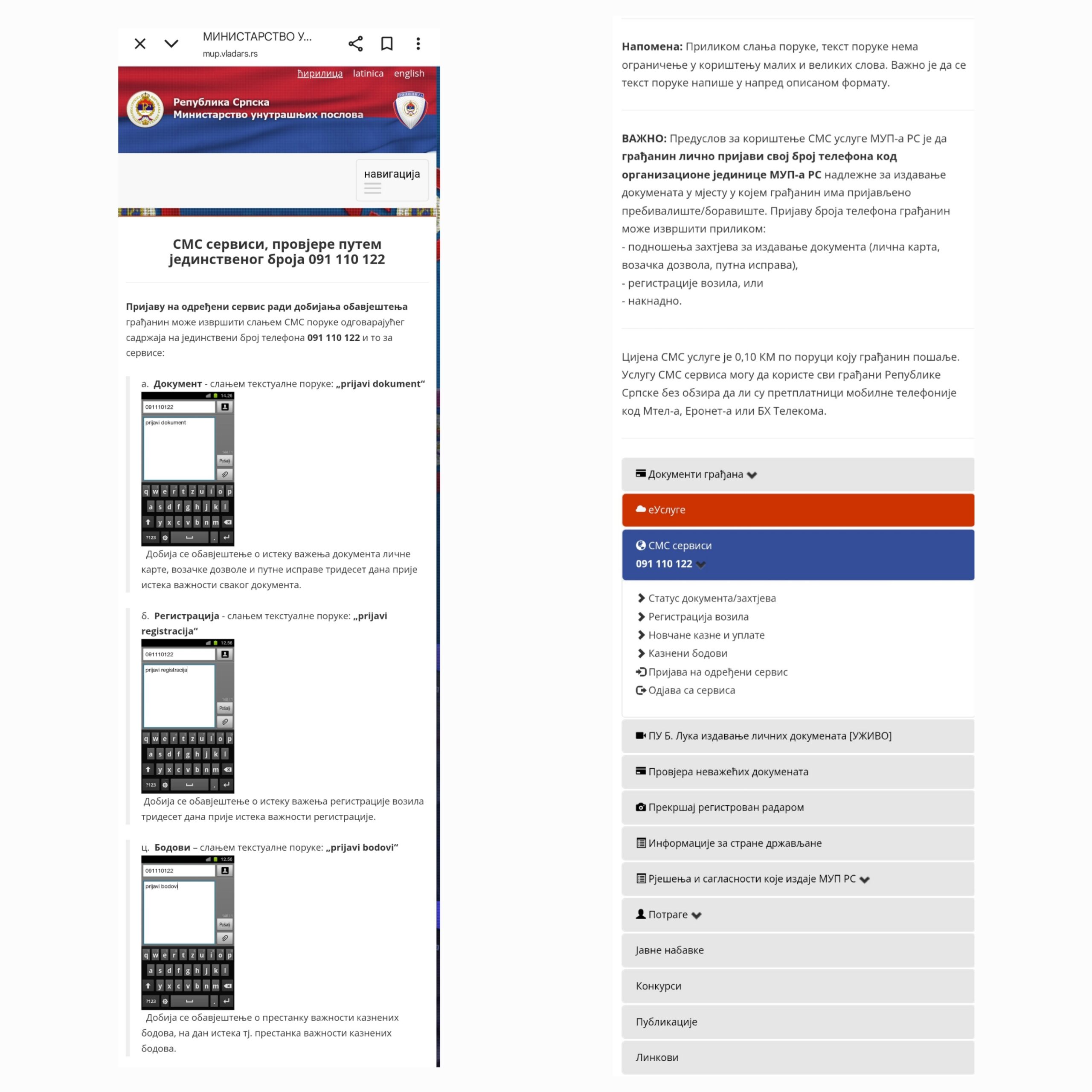 Detaljne informacije o namjeni i korištenju SMS servisa Ministarstva unutrašnjih poslova Republike Srpske dostupne su na internet stranici www.mup.vladars.rs .