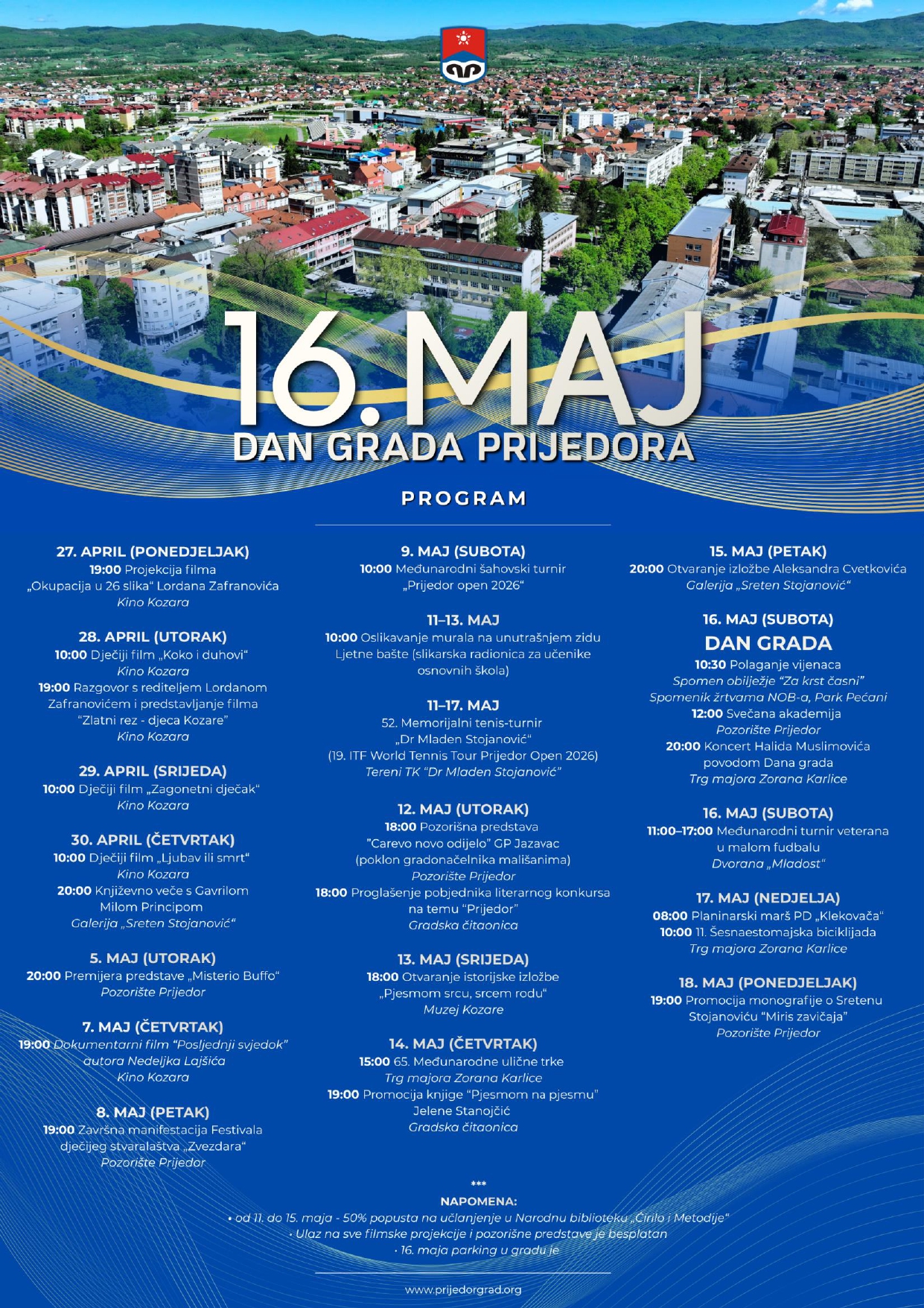 Naslovnica NOVOSTI Prijedor Od danas do 18. maja niz događaja povodom Dana grada